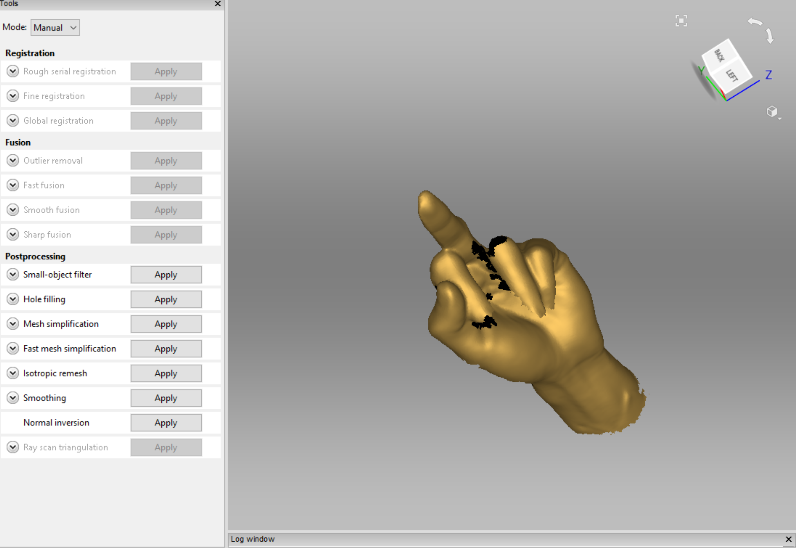 Once you are happy with the detail of the mesh scan you apply a range of tools to the file to refine it. You can also use the editor to remove sections of the scan, such as the base.