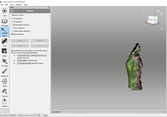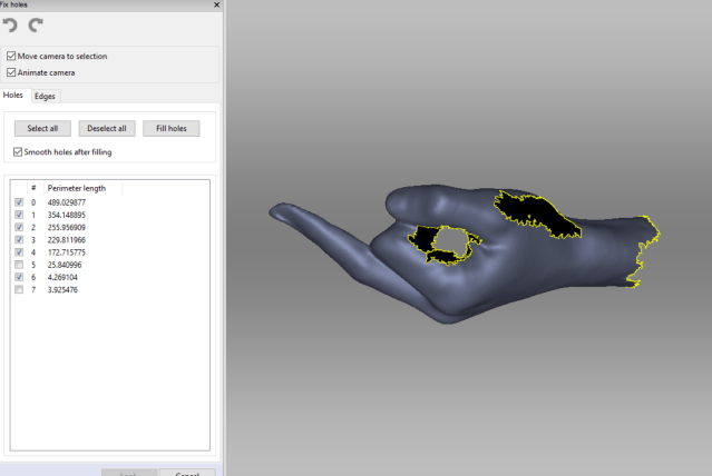 initial scan capture of hand – process of smoothing and fixing